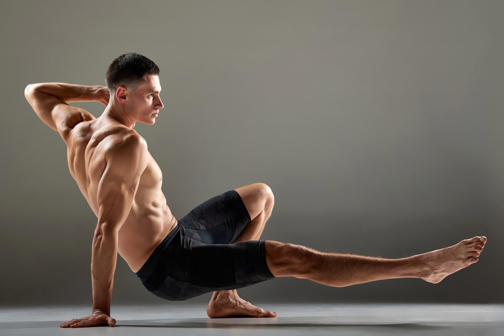 Rotasi tulang belakang yang melatih otot oblique, transverse abdominis, dan multifidus dari berbagai sudut. Penting untuk menjaga fleksibilitas tulang belakang dan mencegah kekakuan yang memicu cedera punggung.